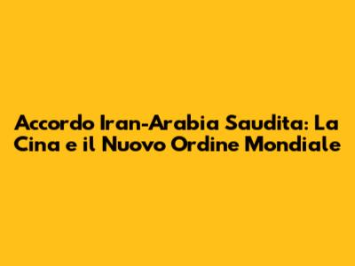Accordo Iran-Arabia Saudita: La Cina E Il Nuovo Ordine