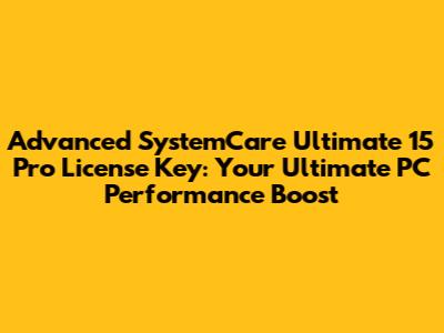 Hey guys! Let's talk about something super important for anyone who loves their computer running like a dream: Advanced SystemCare Ultimate 15 Pro license key. In today's digital world, our PCs do so much for us, from work and creativity to entertainment and staying connected. But let's be real, over time, they can get sluggish, cluttered, and just plain annoying. That's where a powerful tool like Advanced SystemCare Ultimate 15 Pro comes in, and getting your hands on a valid license key is your ticket to unlocking its full potential. We're going to dive deep into what makes this software a must-have, why you need a license key, and how it can totally transform your computing experience. Get ready to say goodbye to lag and hello to lightning-fast performance, folks!