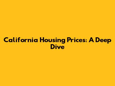 California Housing Prices: A Deep Dive