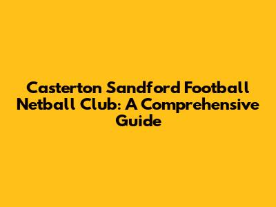 Hey sports fanatics! Ever heard of the Casterton Sandford Football Netball Club? If not, you're in for a treat! This article is your ultimate guide, covering everything from its rich history and thrilling matches to its vibrant community and the stars who make it shine. We'll dive deep into the heart of this incredible club, exploring what makes it a cornerstone of the Casterton community and a beacon for sports enthusiasts. So, grab your favorite drink, get comfy, and let's jump right in!