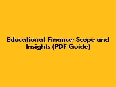 Educational Finance: Scope And Insights (PDF Guide)