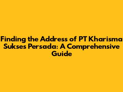 Hey guys! So, you're trying to find the address of PT Kharisma Sukses Persada? Awesome! You've come to the right place. This guide is designed to help you navigate the process of finding the exact location, whether you need it for business, personal reasons, or just pure curiosity. We'll dive deep, explore different methods, and make sure you have all the information you need. Let's get started, shall we?
