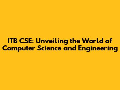 ITB CSE: Your Gateway To Tech Excellence