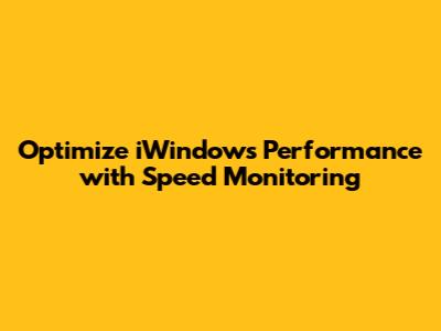 Optimize IWindows Performance With Speed Monitoring