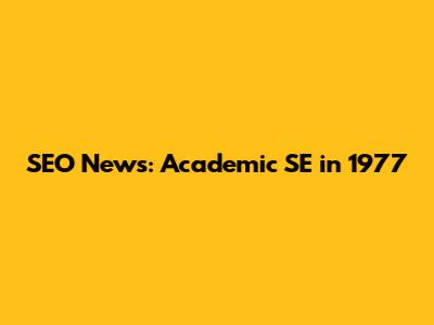 SEO News: Academic SE In 1977