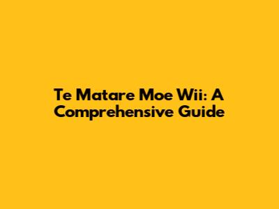 Te Matare Moe Wii: A Comprehensive Guide