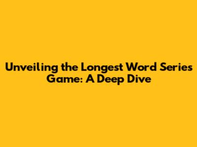 Unveiling The Longest Word Series Game: A Deep Dive