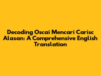 Unveiling The Meaning: 'Oscai Mencari Carisc Alasan' In English