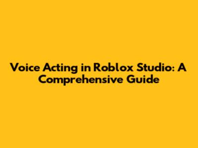 Voice Acting In Roblox Studio: A Comprehensive Guide